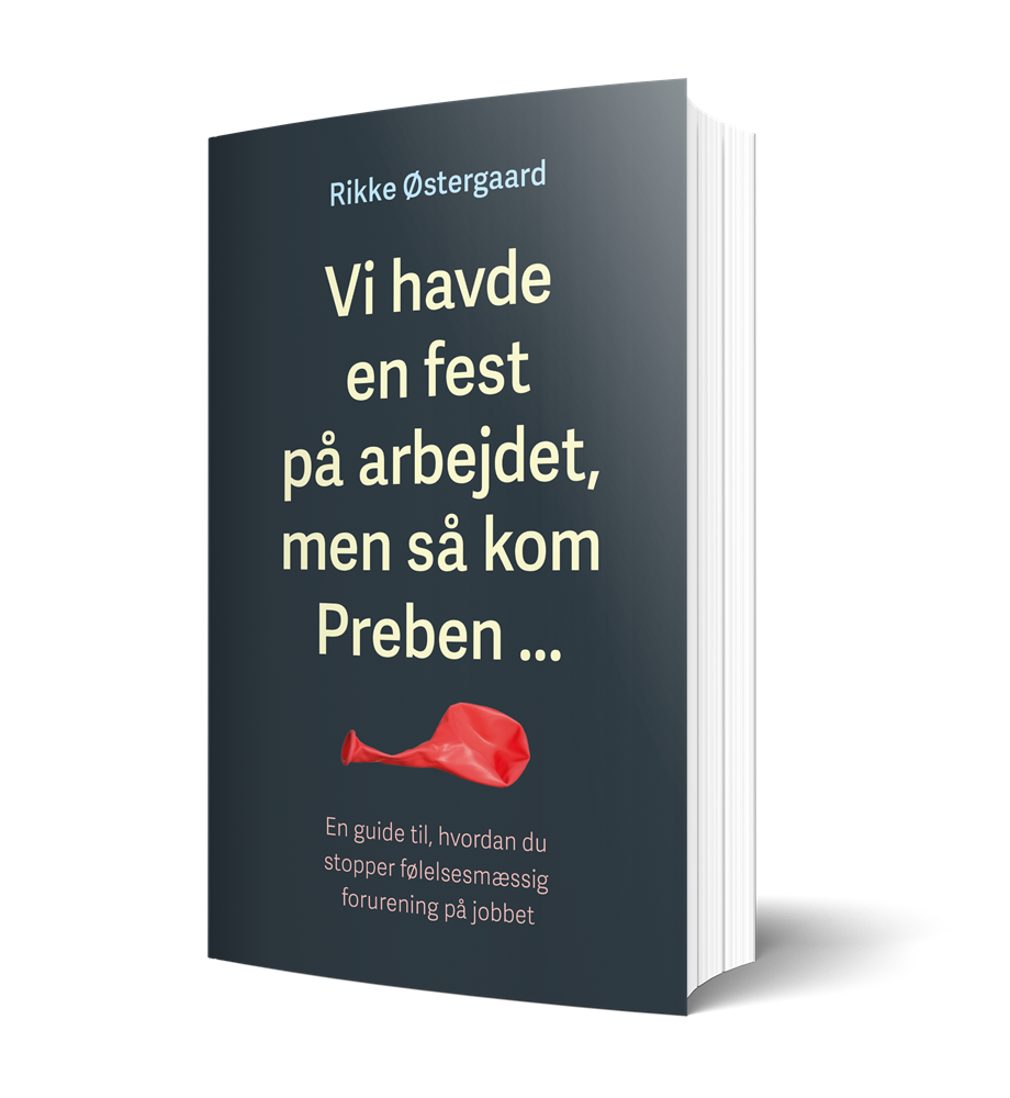 Sociolog og forfatter Rikke Østergaard har skrevet en guide ’Vi havde en fest på arbejdet, men så kom Preben…’ til at stoppe følelsesmæssig forurening på jobbet. Preben er ikke en bestemt person. Han er i os alle sammen, og han kan både være en medarbejder eller en chef, der gør, at du kommer i dårligt humør.